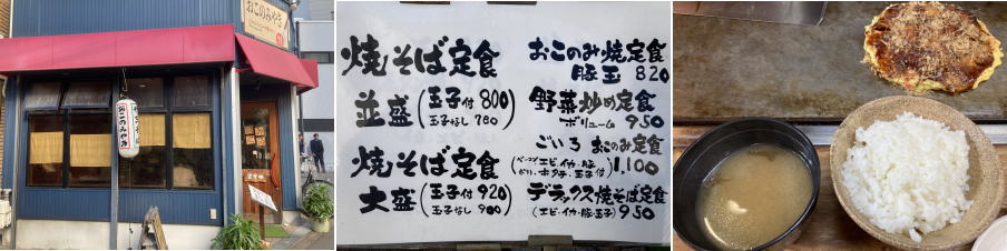 ランチ平均価格帯:650円〜750円、おすすめ:お好み焼き定食750円(写真)